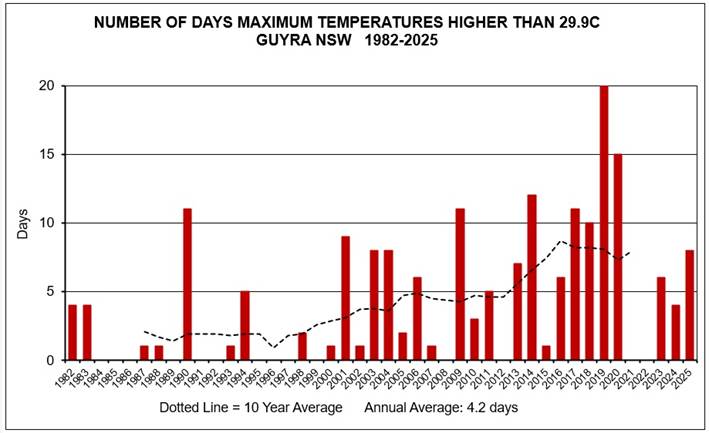 The following maximum temperatures were recorded in Guyra: