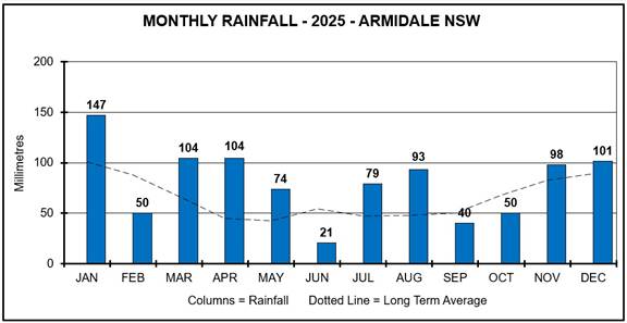 ARMIDALE 2025 ANNUAL WEATHER